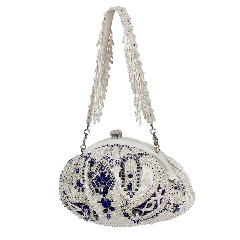 Bijoux Potli Pristine Ivory Lapis Blue With Handle