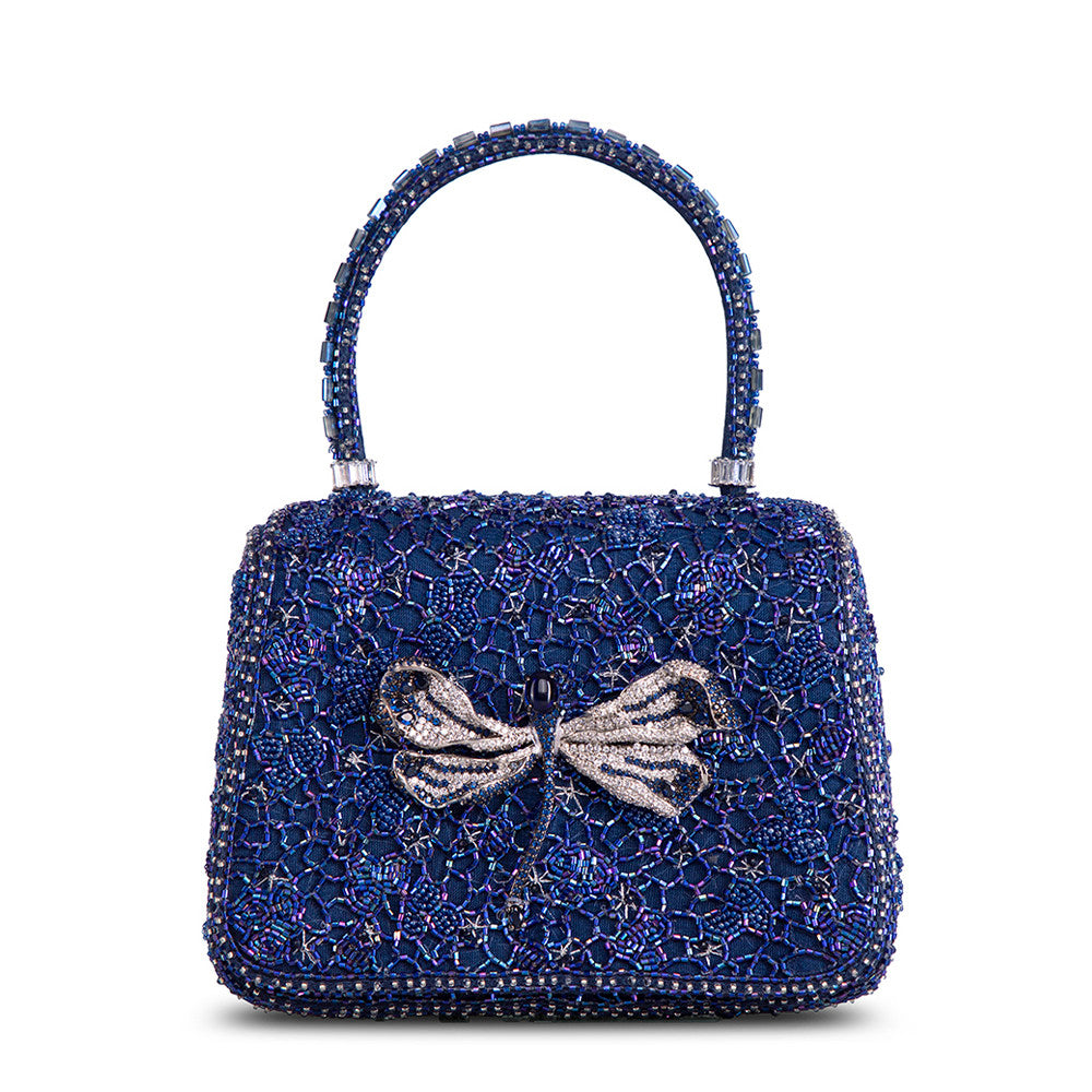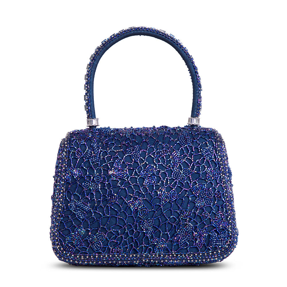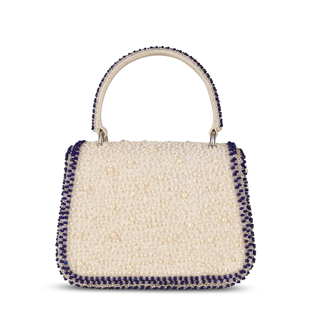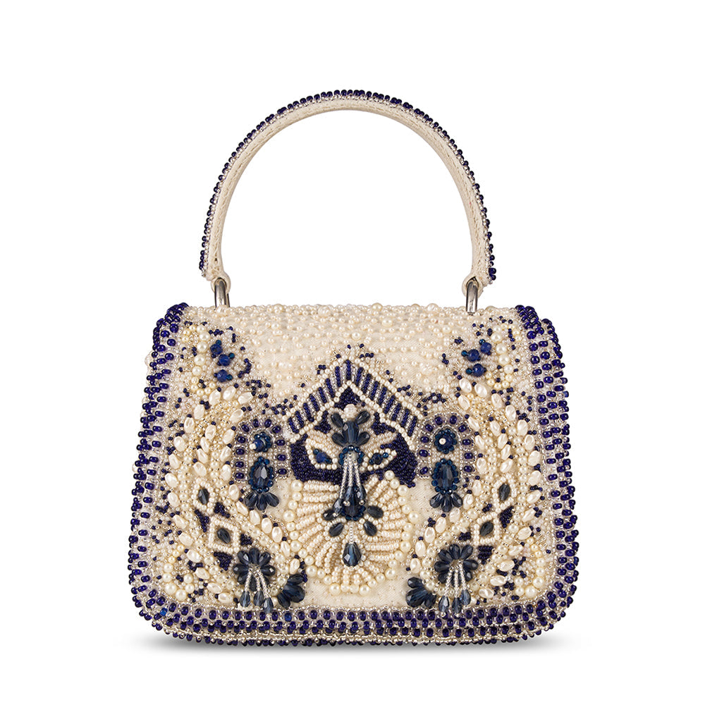 Bijoux Mini Trapezium with Handle Clutch Pristine Ivory Lapis Blue