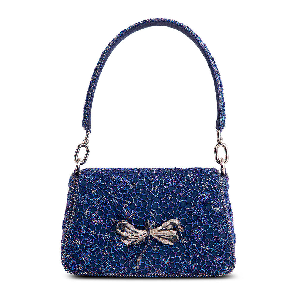 Bijoux Flapover Clutch Pristine Ivory Lapis Blue With Handle