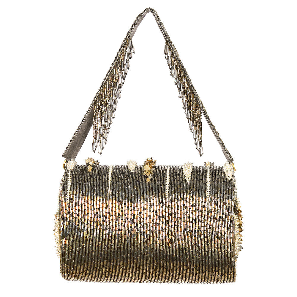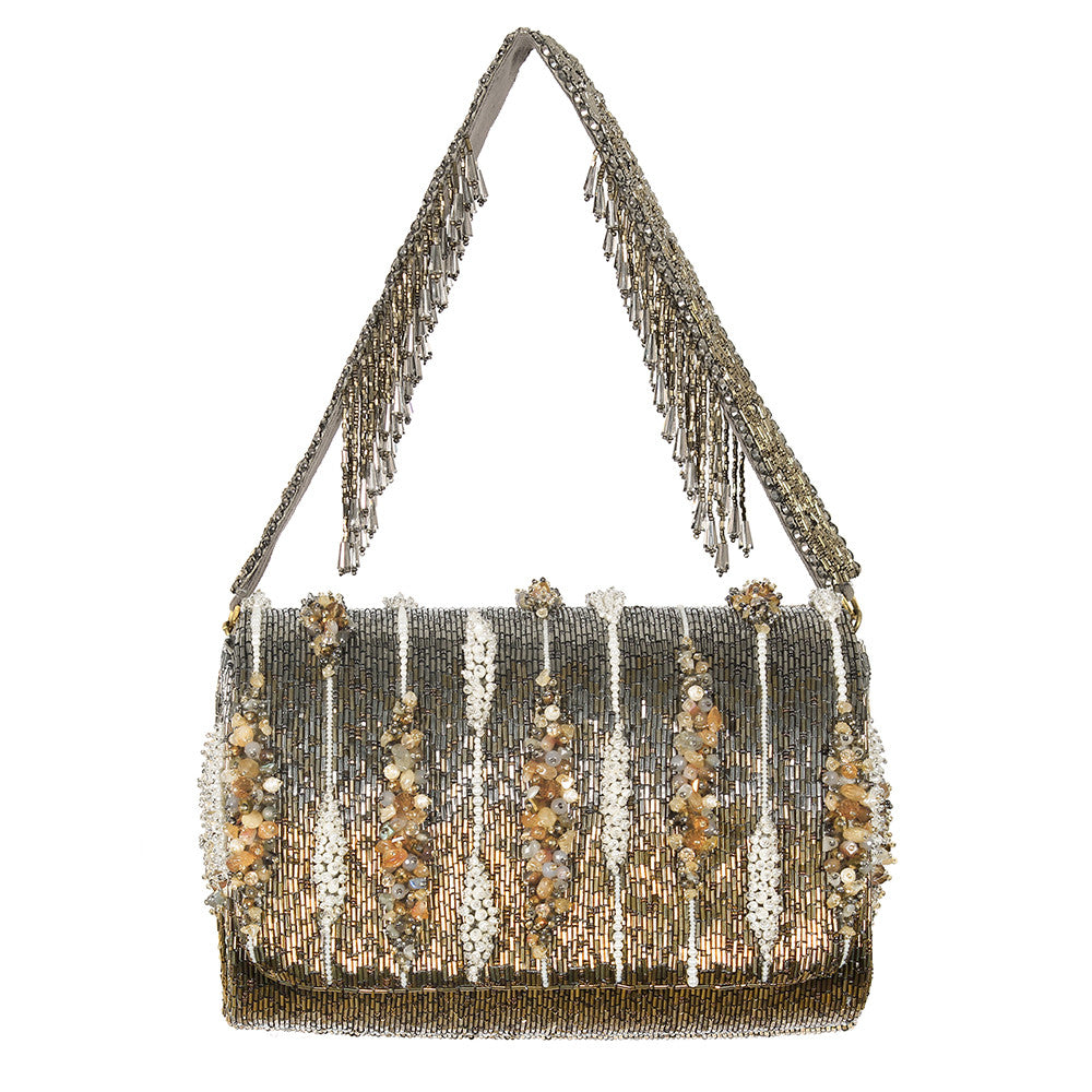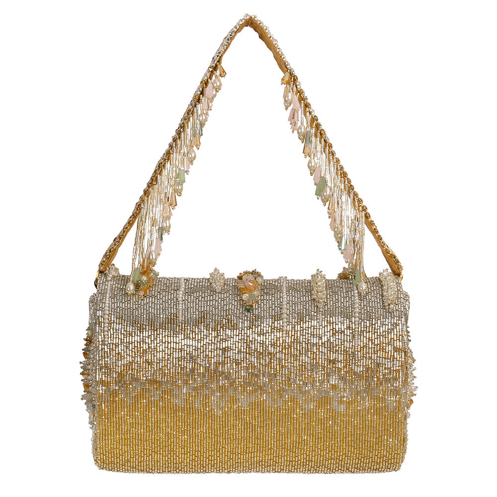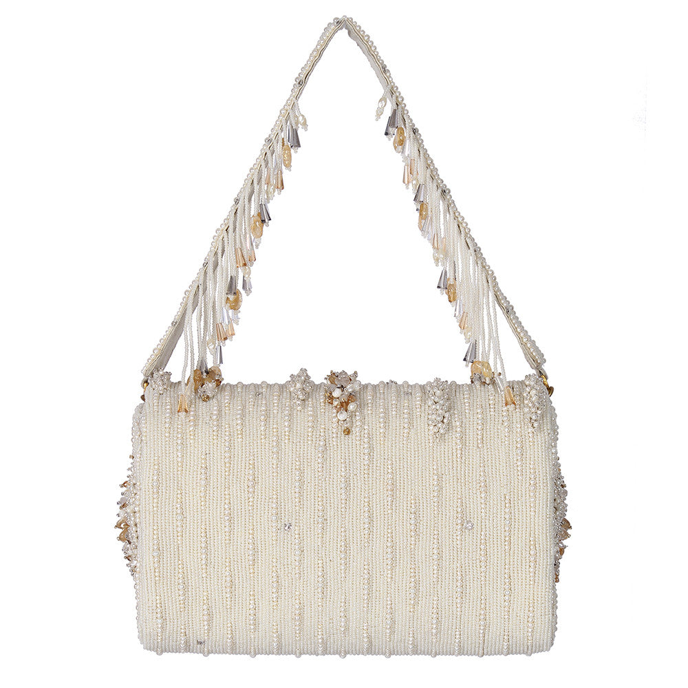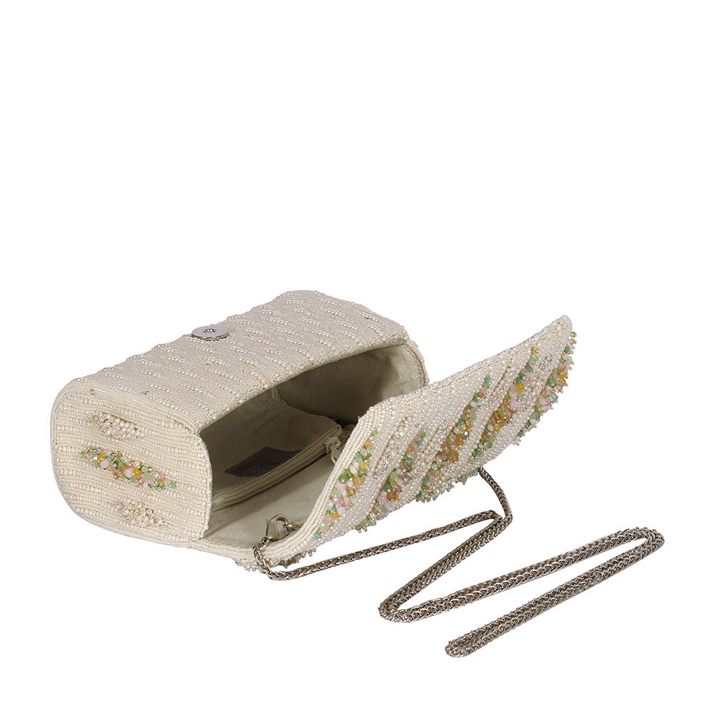 Nora Flapover Clutch Pristine Ivory Peerless Gold Lustrous Silver With Handle