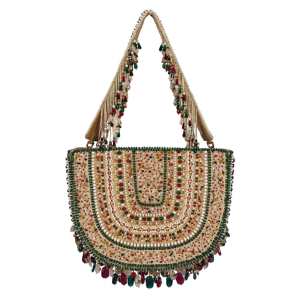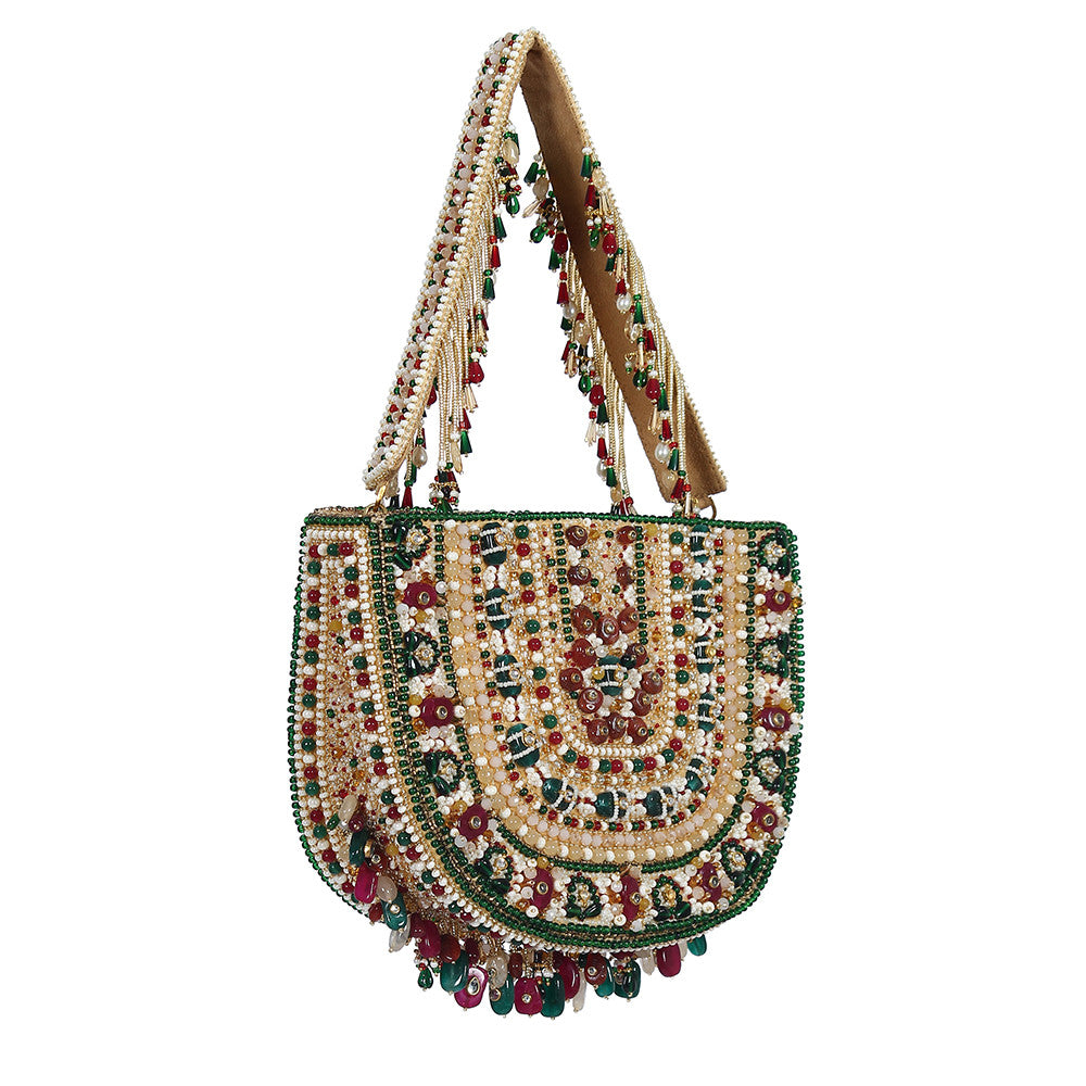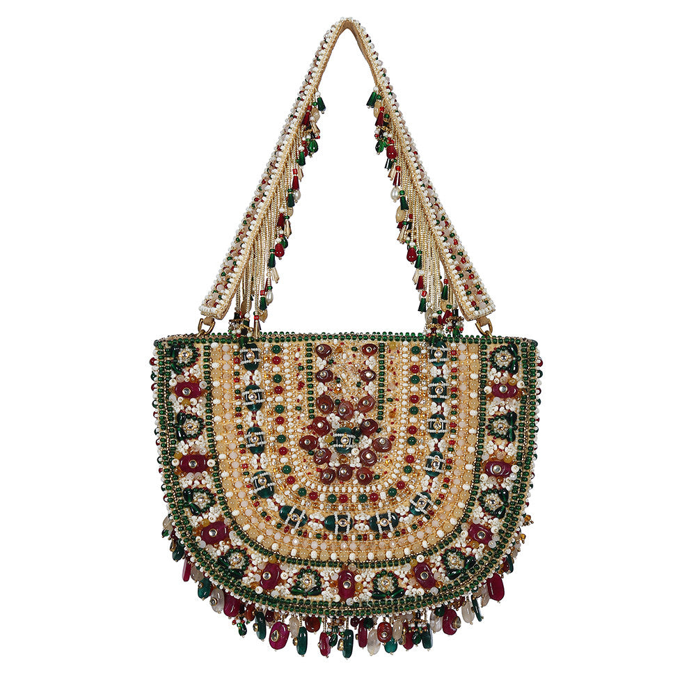 Amara Moon Clutch Ruby Red Emerald Green MULTI With Handle