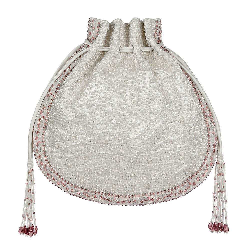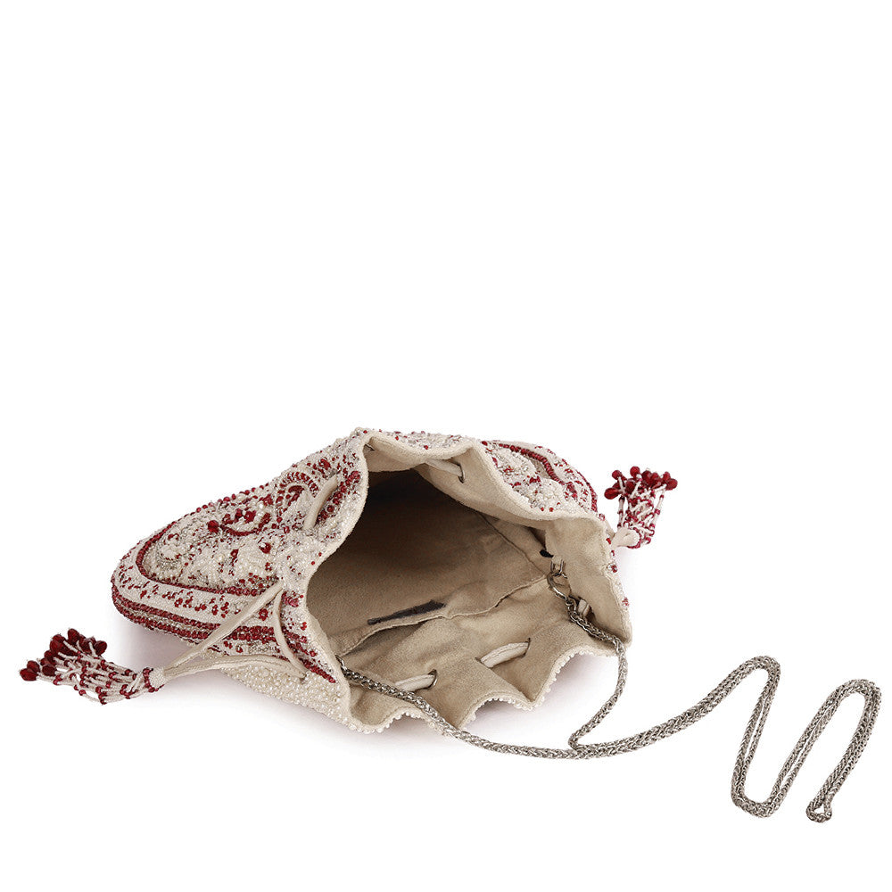 Bijoux Potli Pristine Ivory Ruby Red With Handle