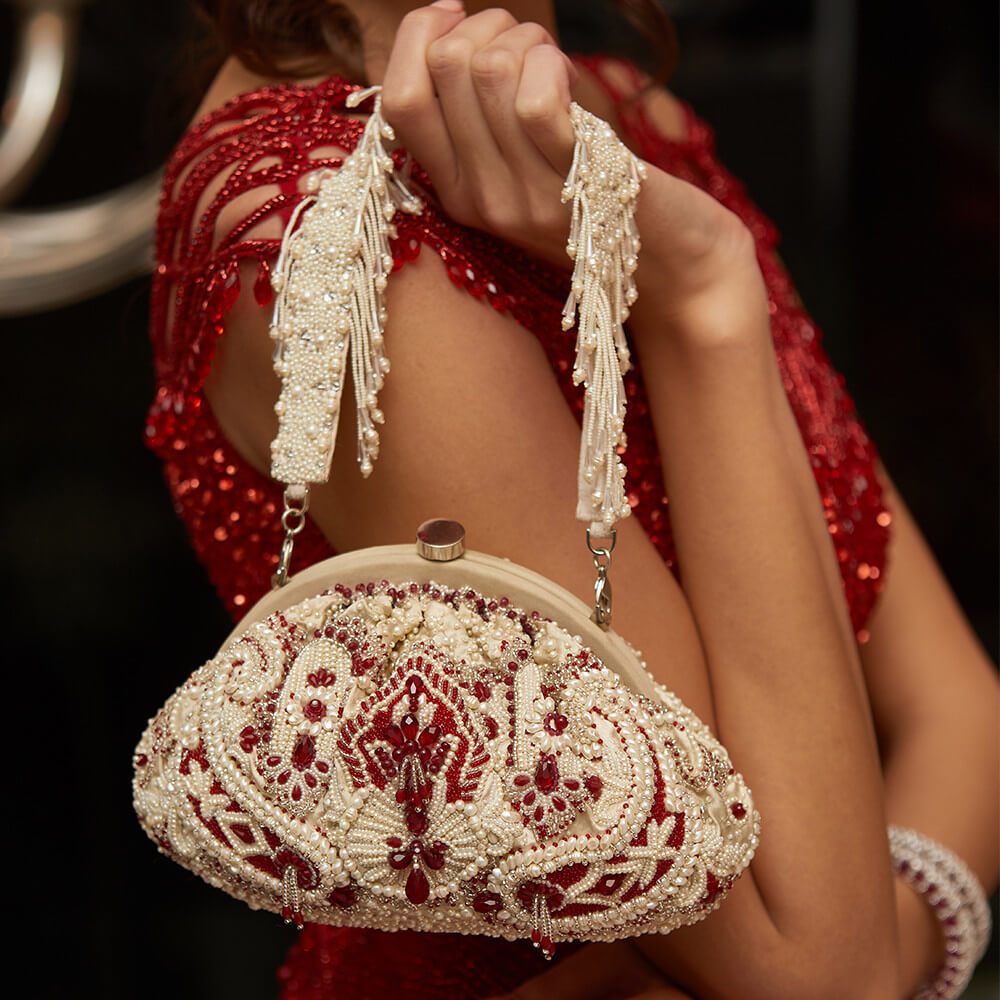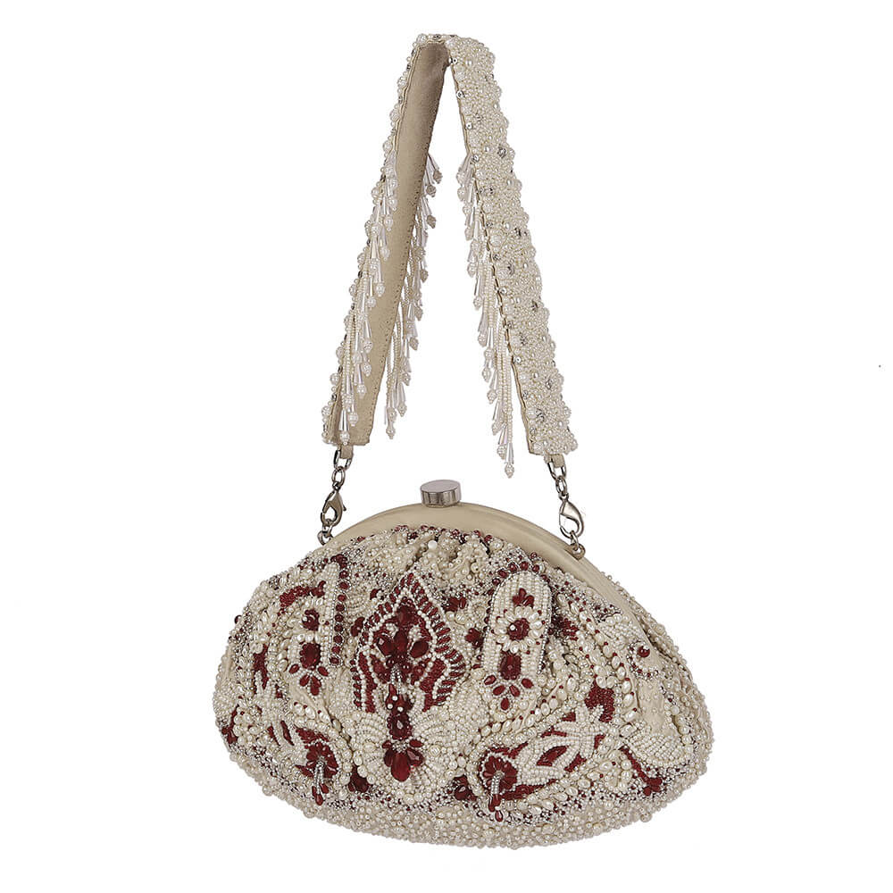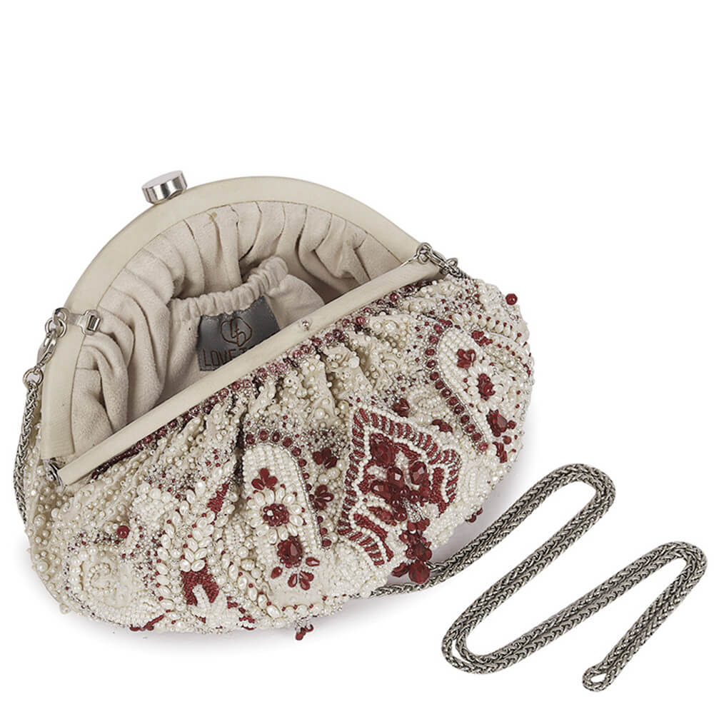 Bijoux Soft Pouch Pristine Ivory Ruby Red With Handle