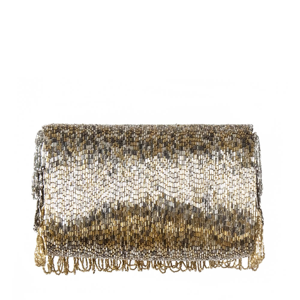 Athena Flapover Clutch Lustrous Silver Peerless Gold MULTI