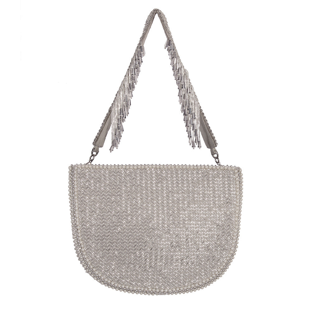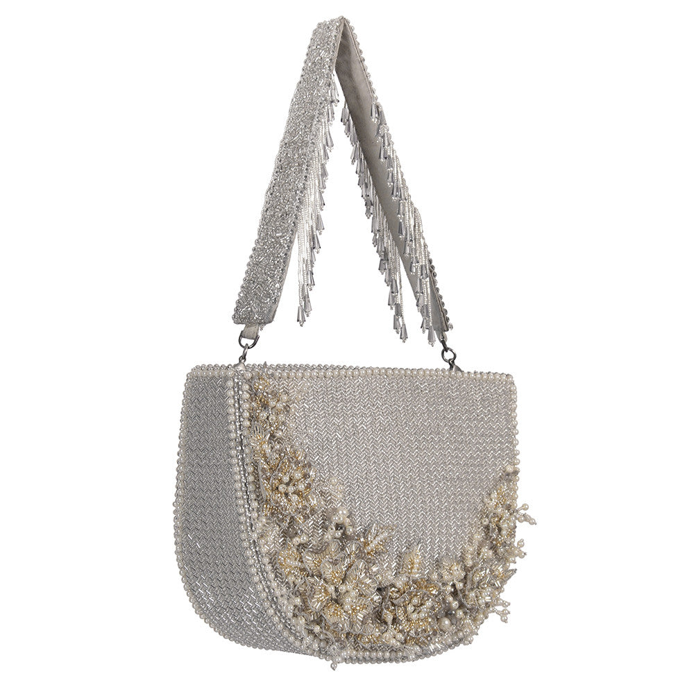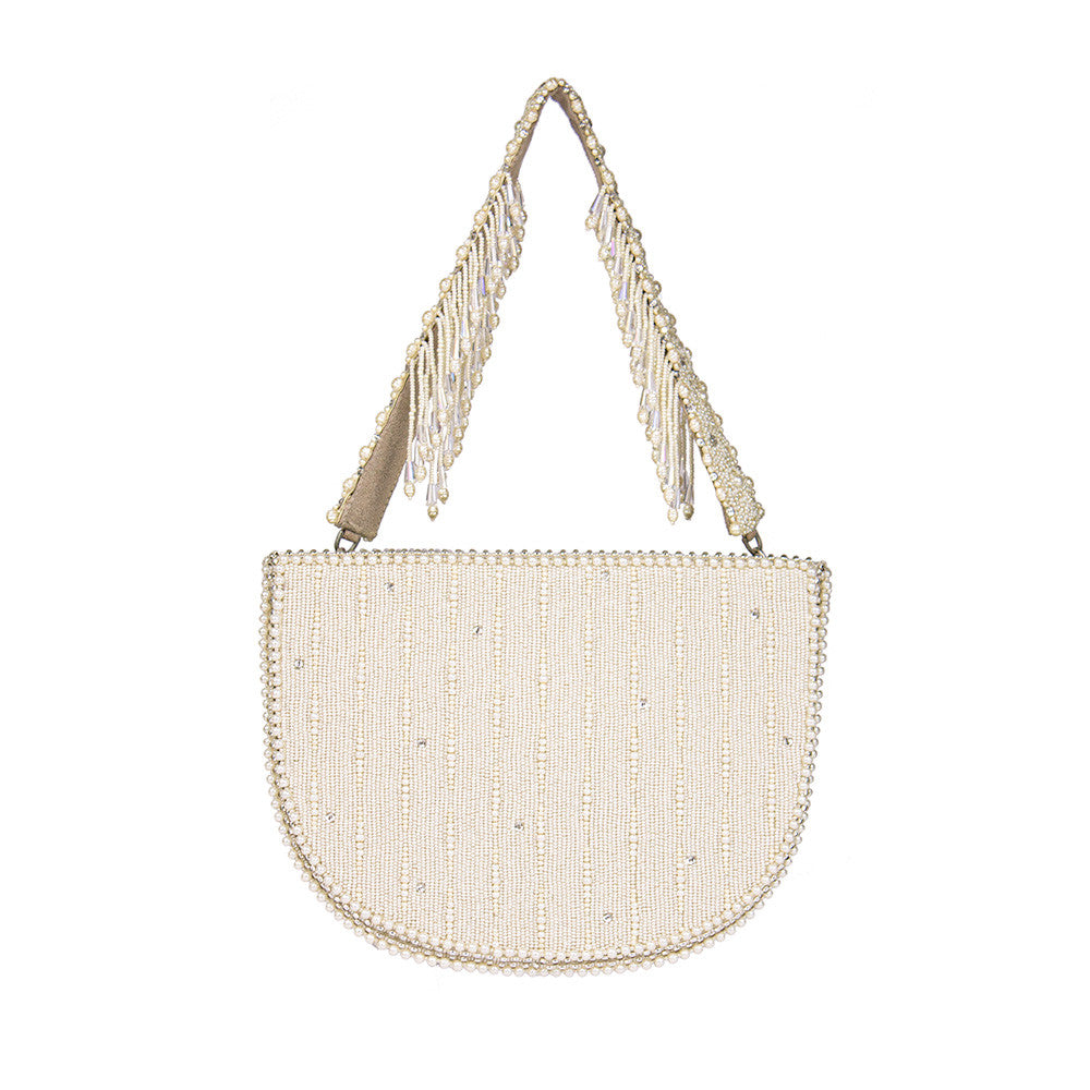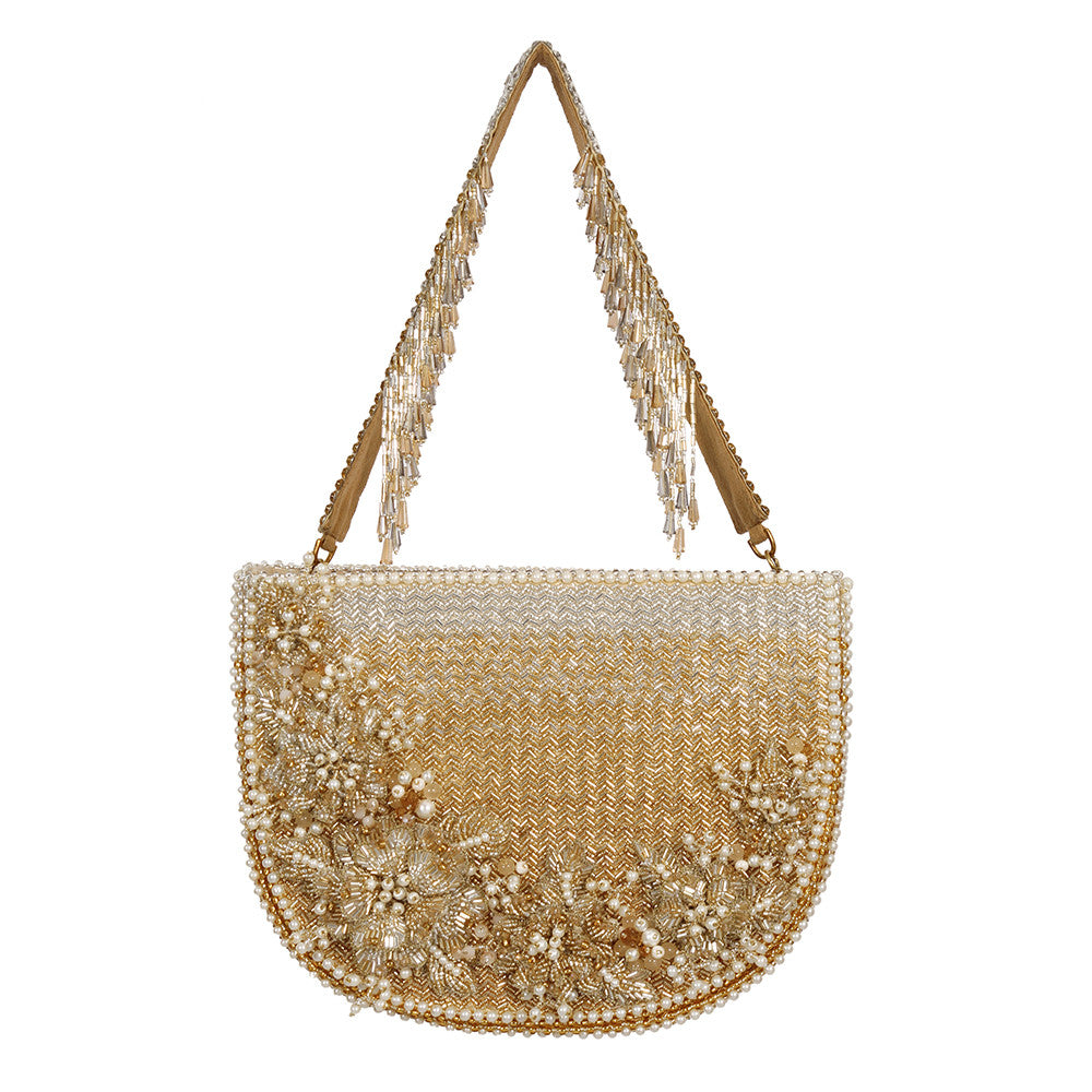 Esme Moon Clutch Peerless Gold Lustrous Silver With Handle