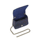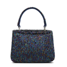 The Eclat Mini Trapezium Iris Purple is a neomodern mini bag featuring beautifully hand-embroidered assortment of precision cut Japanese micro beads & crystals in an ombré pattern. It has an ornate yet delicate look. It's compact, structured shape adds a bold, modern edge, while the embellished top handle and a crossbody chain provide versatile styling options. Perfect for holding makeup, currency, cards and keys, and includes an inside slip pocket for easy organization. Perfect for elevating both day and evening looks.