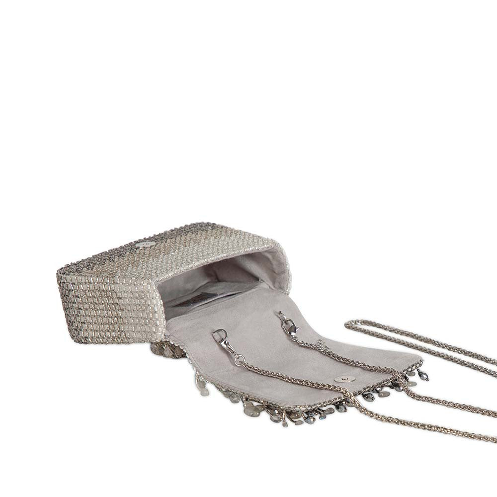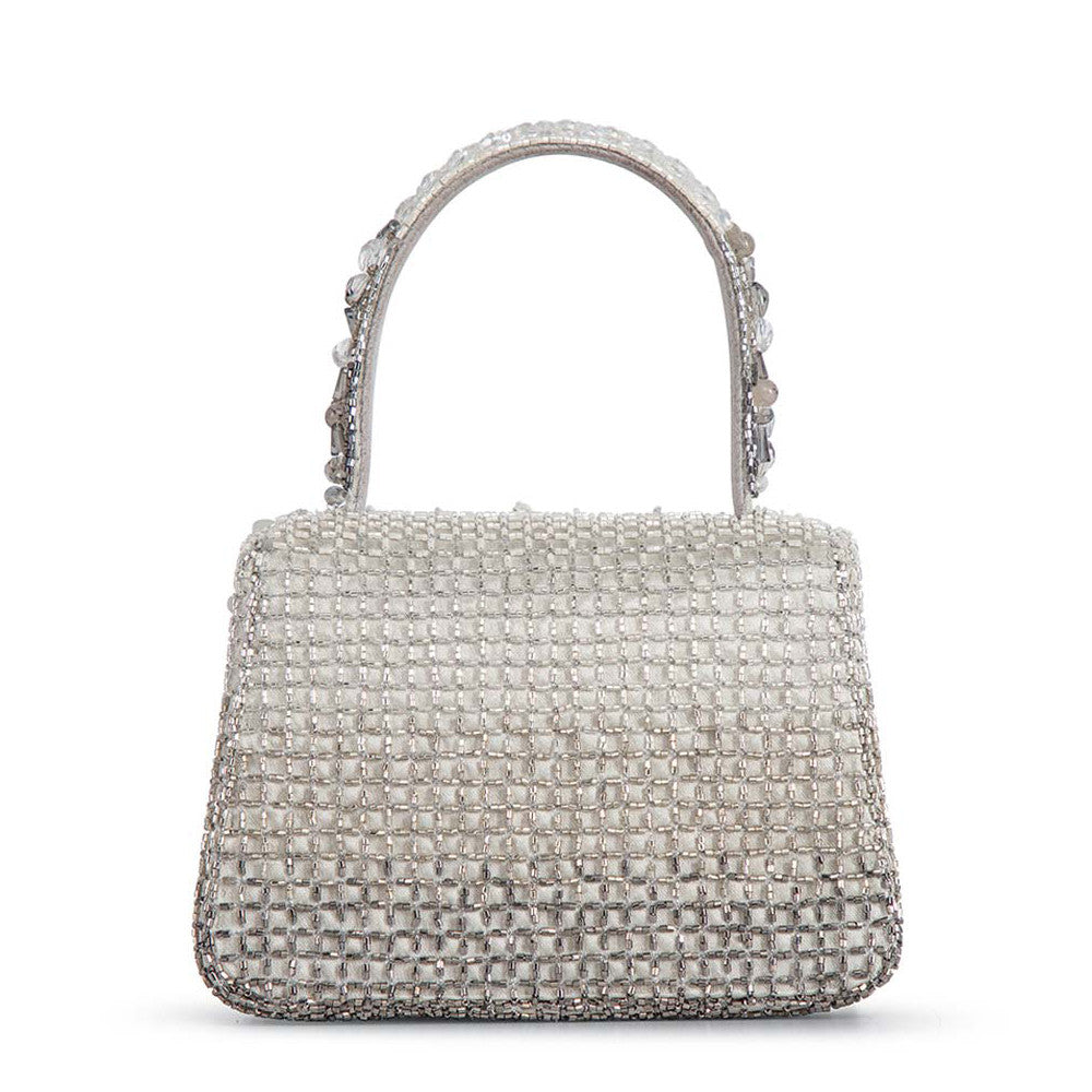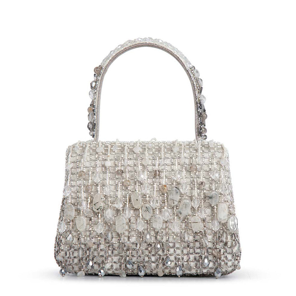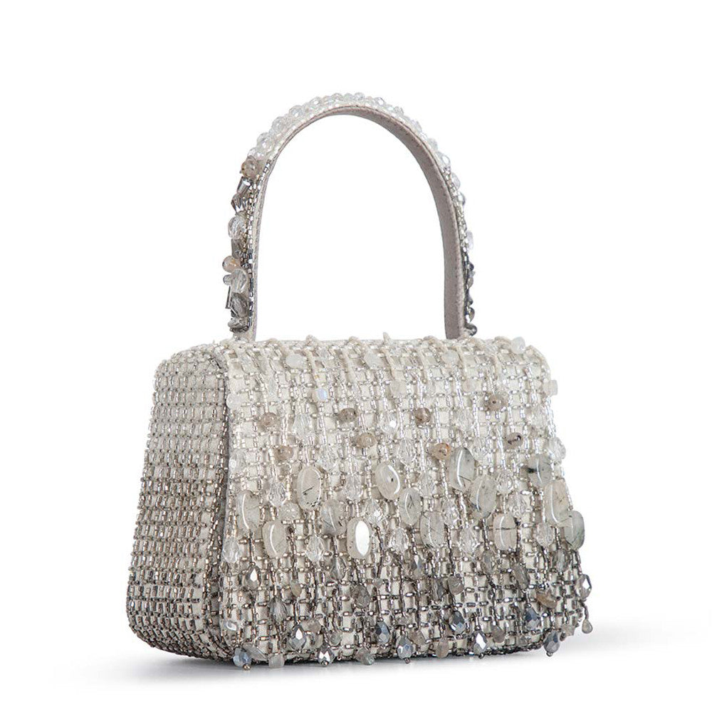 Opal Mini Trapezium with Handle Clutch Lustrous Silver